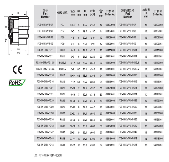 电磁兼容电缆接头(PC制螺纹)及加长型