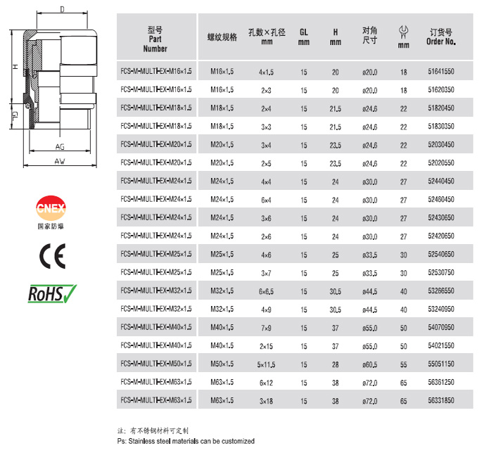 尼龙防爆多孔电缆接头(公制螺纹)